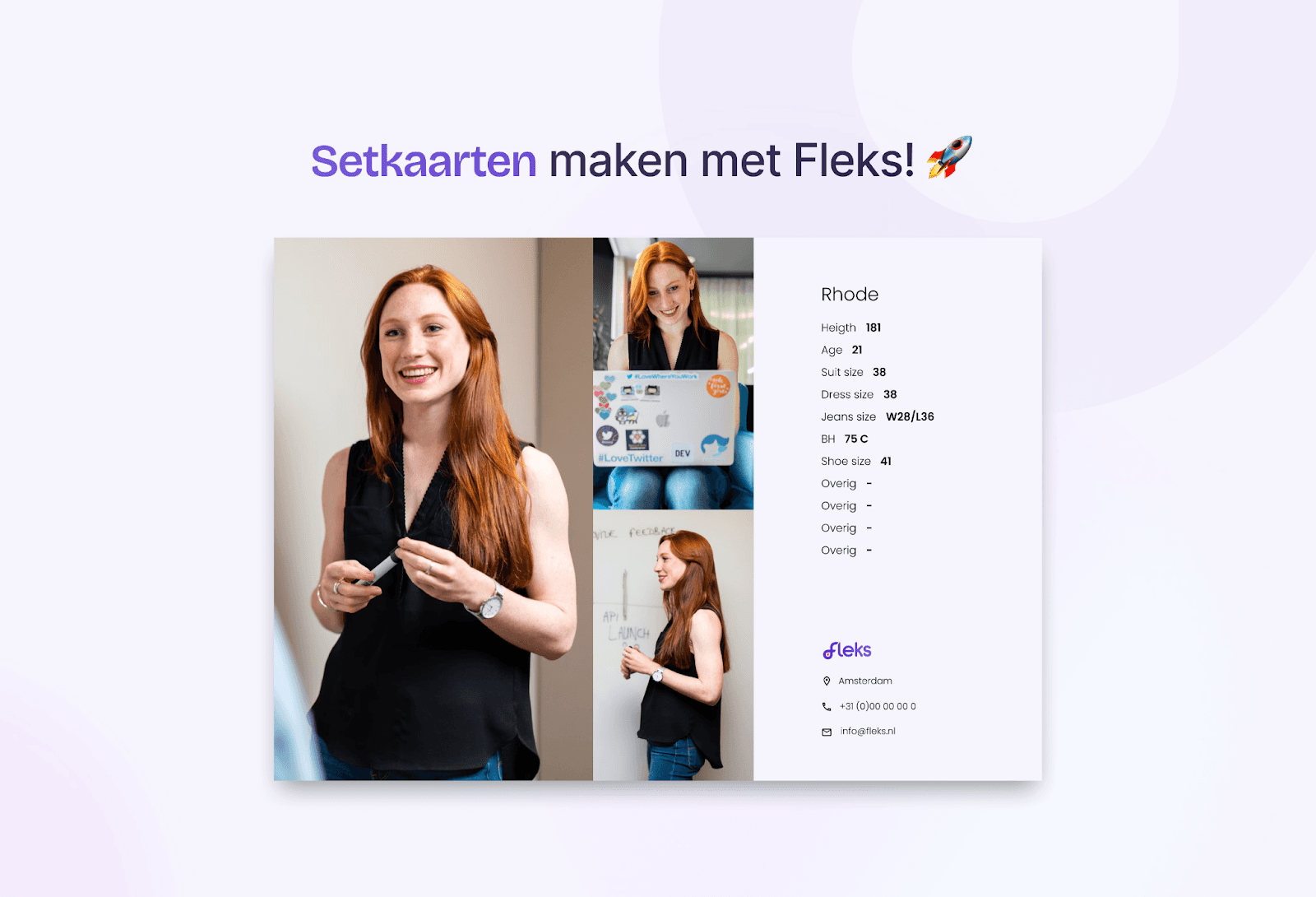 A set card, also known as a model card, is a clear presentation of an employee that contains important information and photos. The concept originated in the modeling world, where models use set cards to present their appearance and measurements in a professional manner. For the hospitality sector, this concept is a valuable addition to give customers a clear picture of the employees they are hiring.