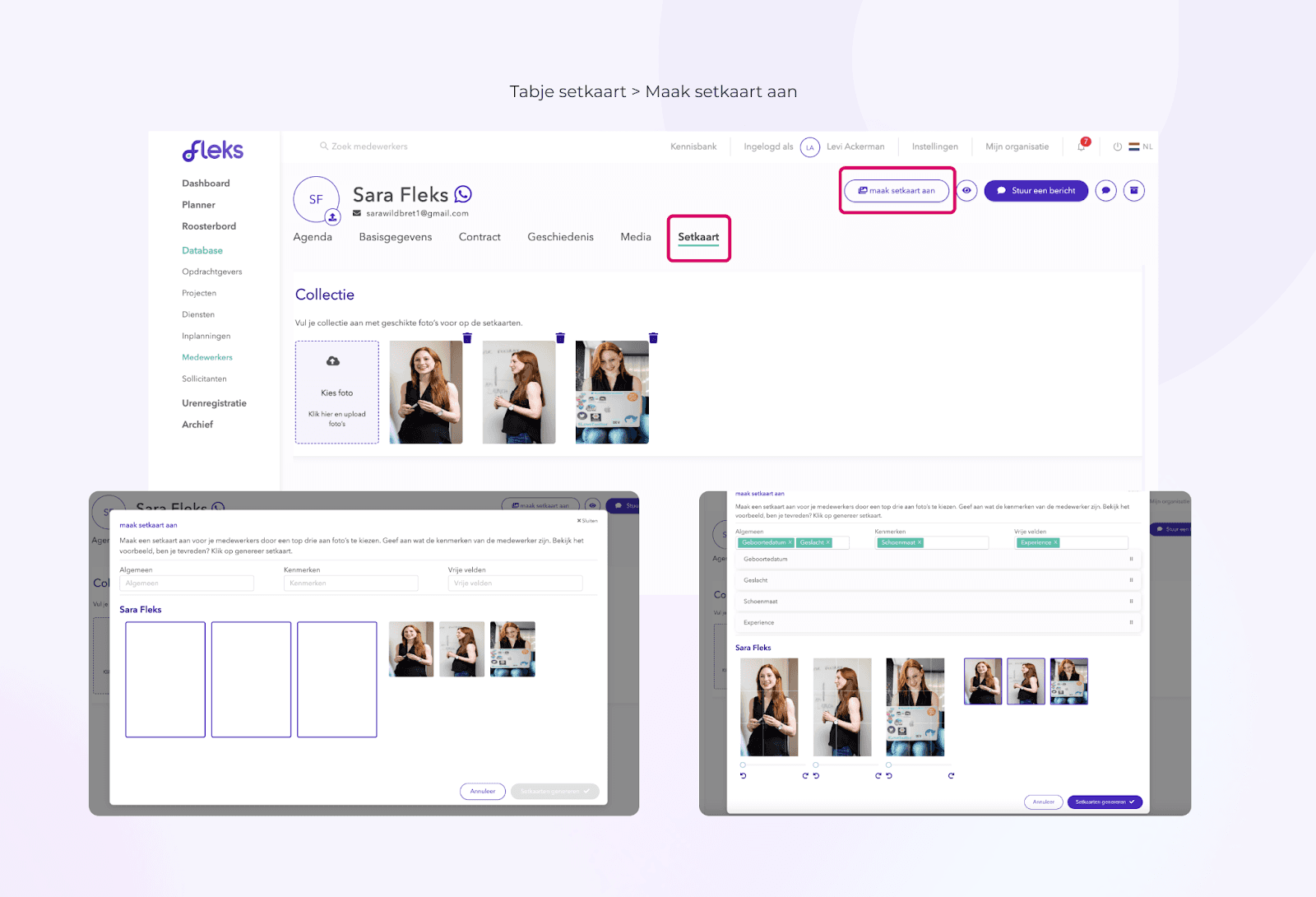 With the new set card functionality in Fleks, you can quickly and easily create professional set cards for your employees. These cards help you present your team to customers in a clear, organized, and attractive way. The ability to easily manage photos and data via the Fleks app makes this process not only fast, but also flexible and user-friendly.